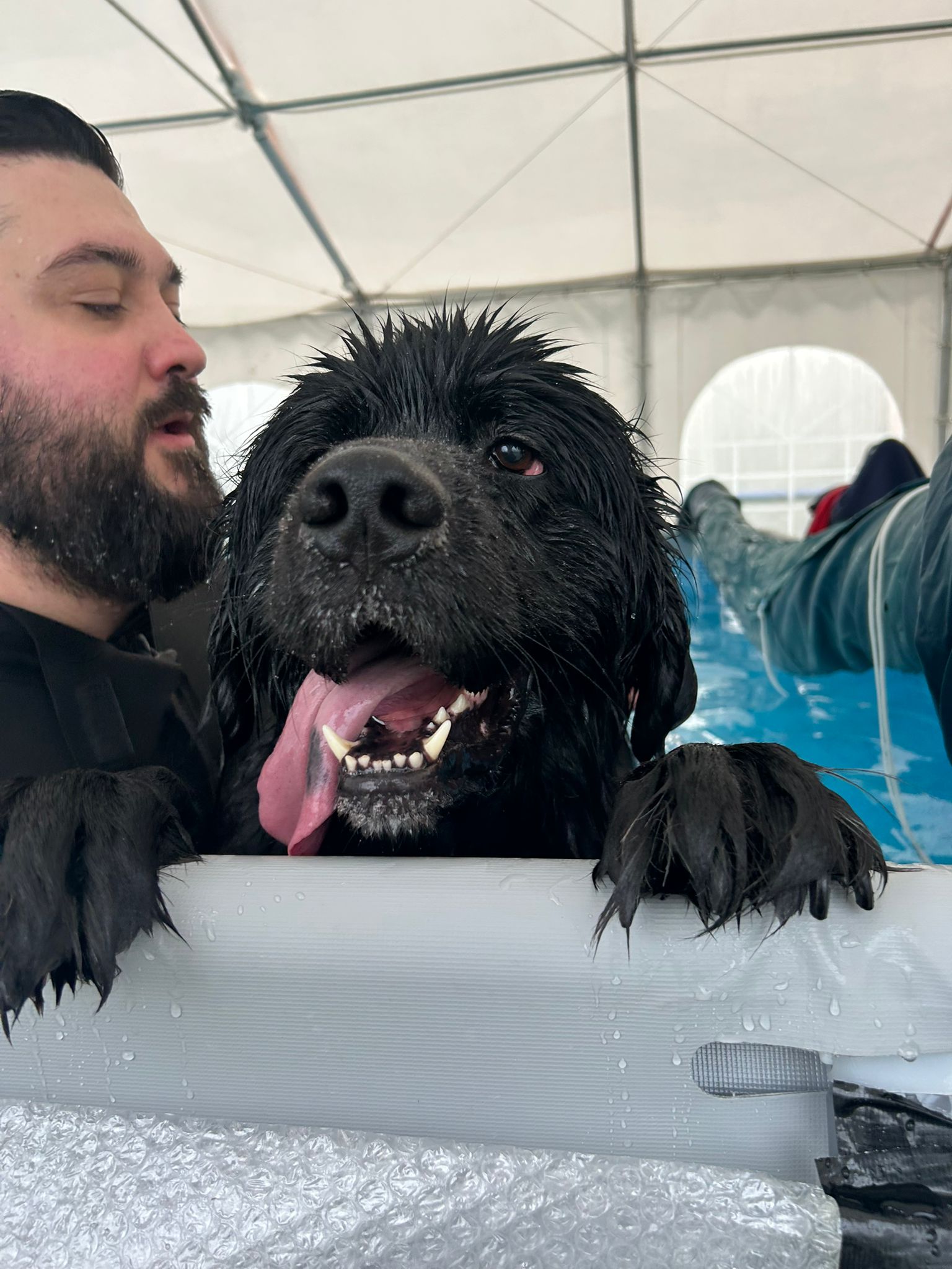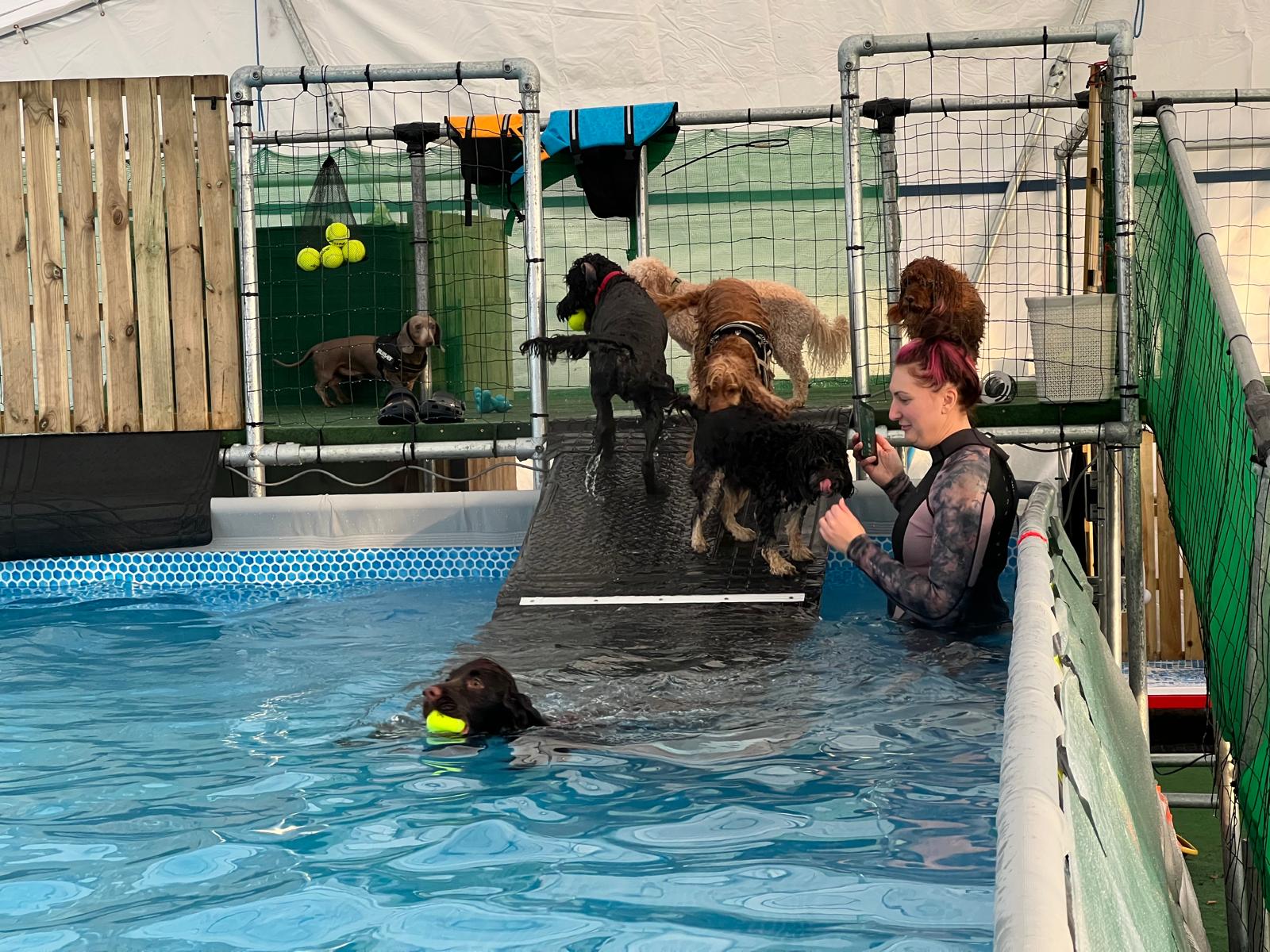 Heated indoor pool inside a spacious 10m x 20m marquee, offering the ideal space for a refreshing splash for dogs.